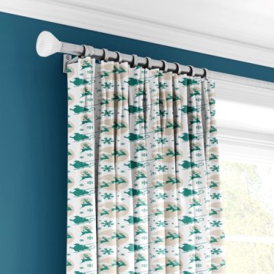 Κουρτίνα Χριστουγεννιάτικη σε Τυρκουάζ Φόντο με Πολυθεσική Τρέσα